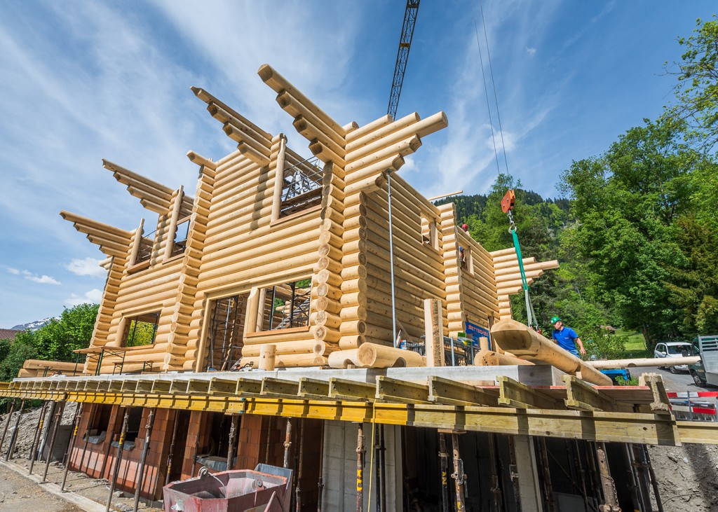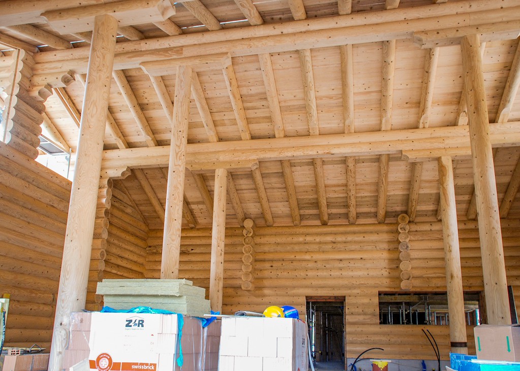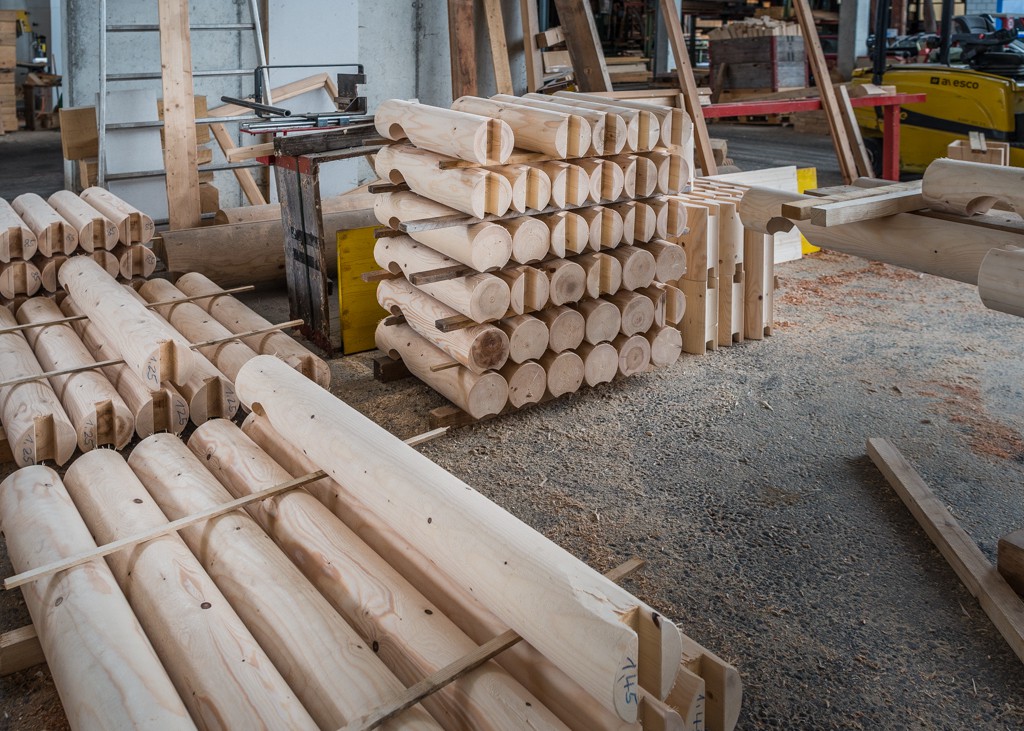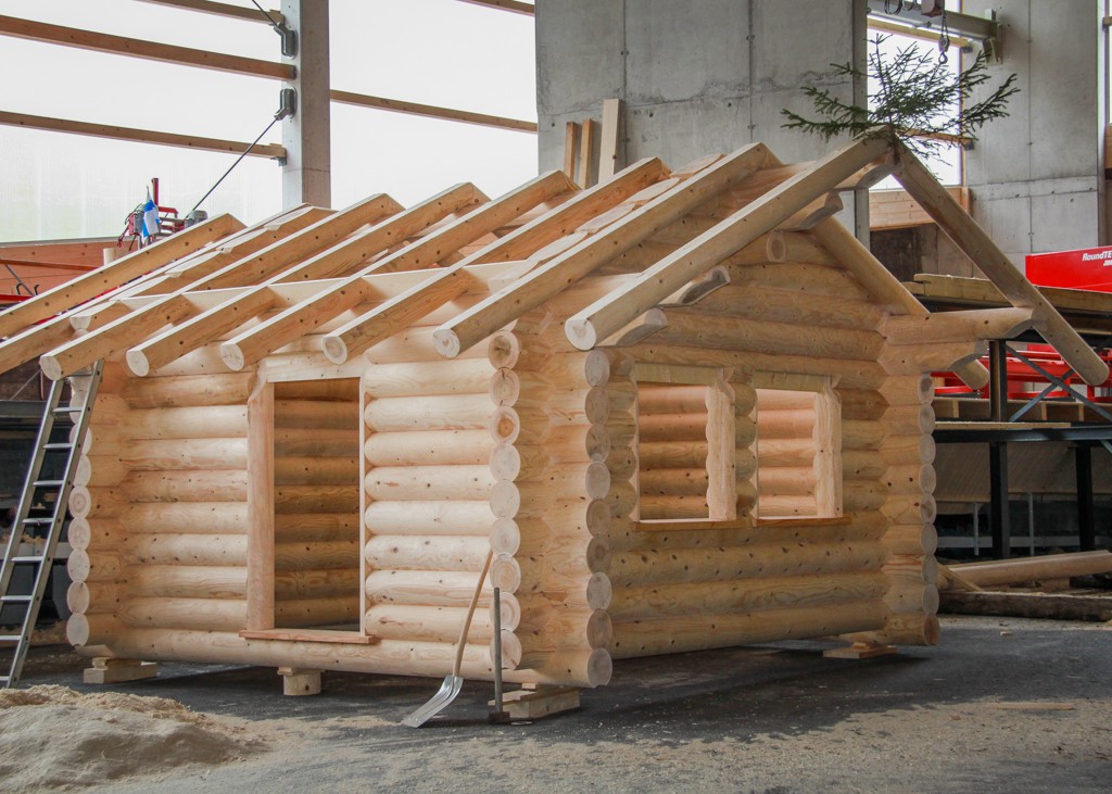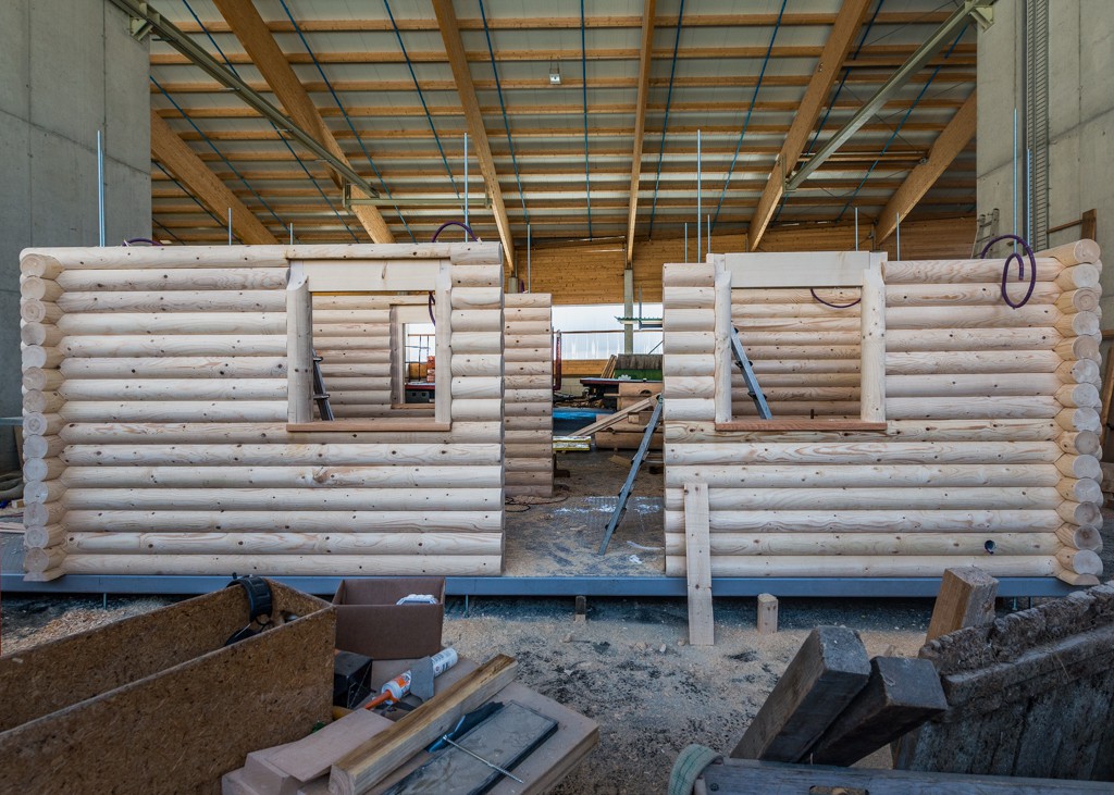 In unserer modernen Montagehalle stellen wir Rundholz-Blockhäuser nach Kundenwunsch her.