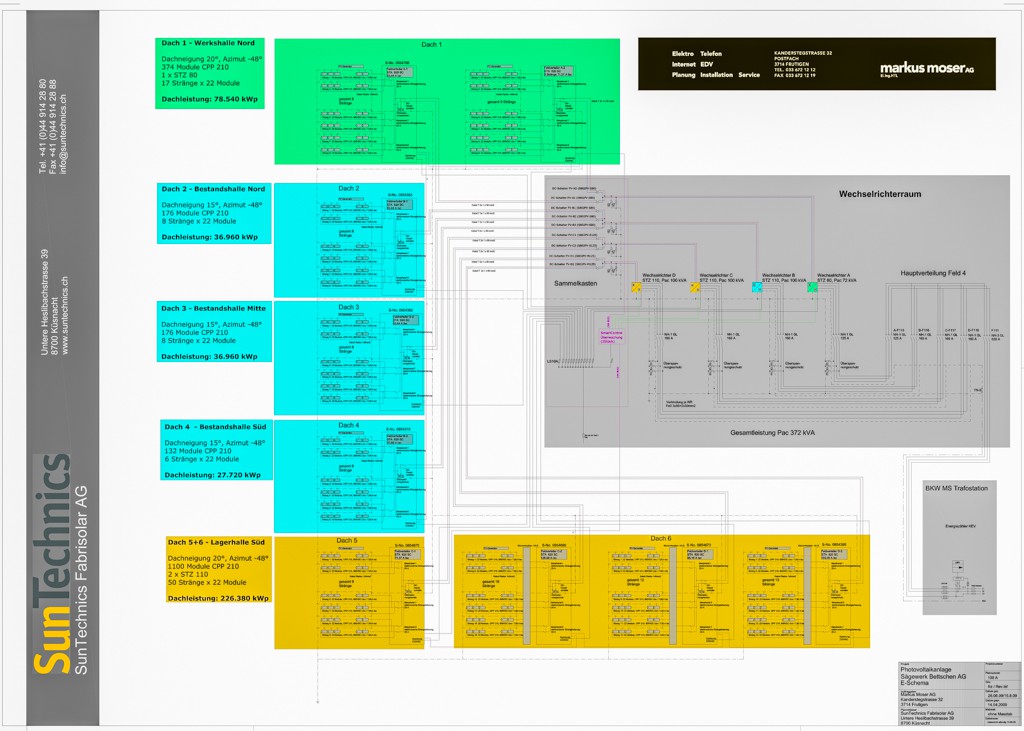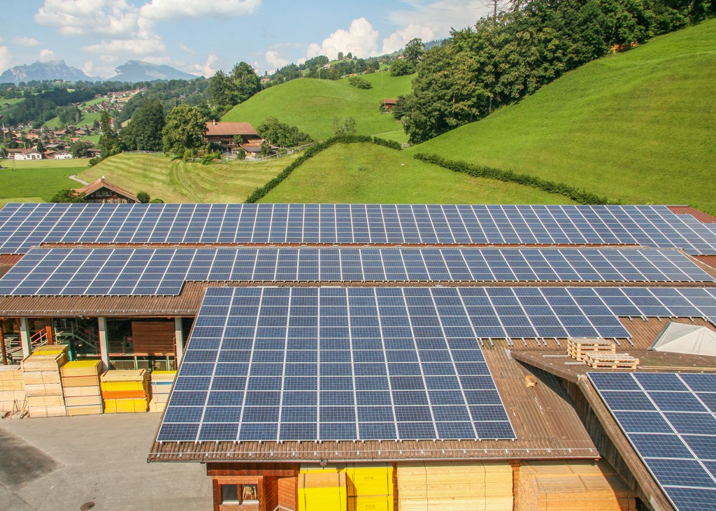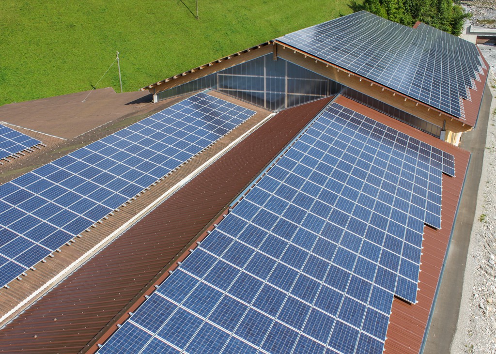 Mit unserem Solarkraftwerk produzieren wir auf einer Fläche von knapp 3’200 m2 und, verteilt auf 6 Dächern Strom für 150 bis 200 Haushalte.